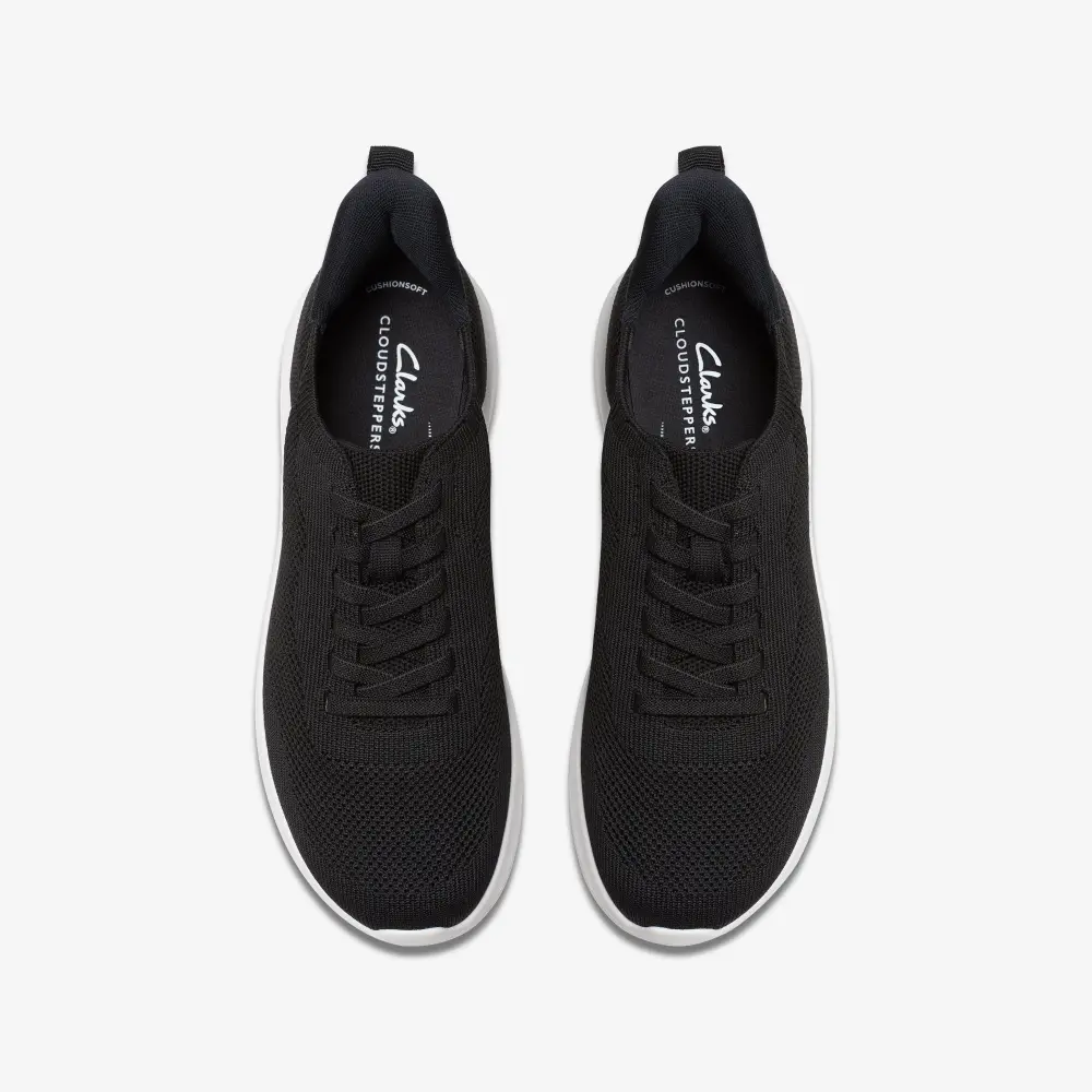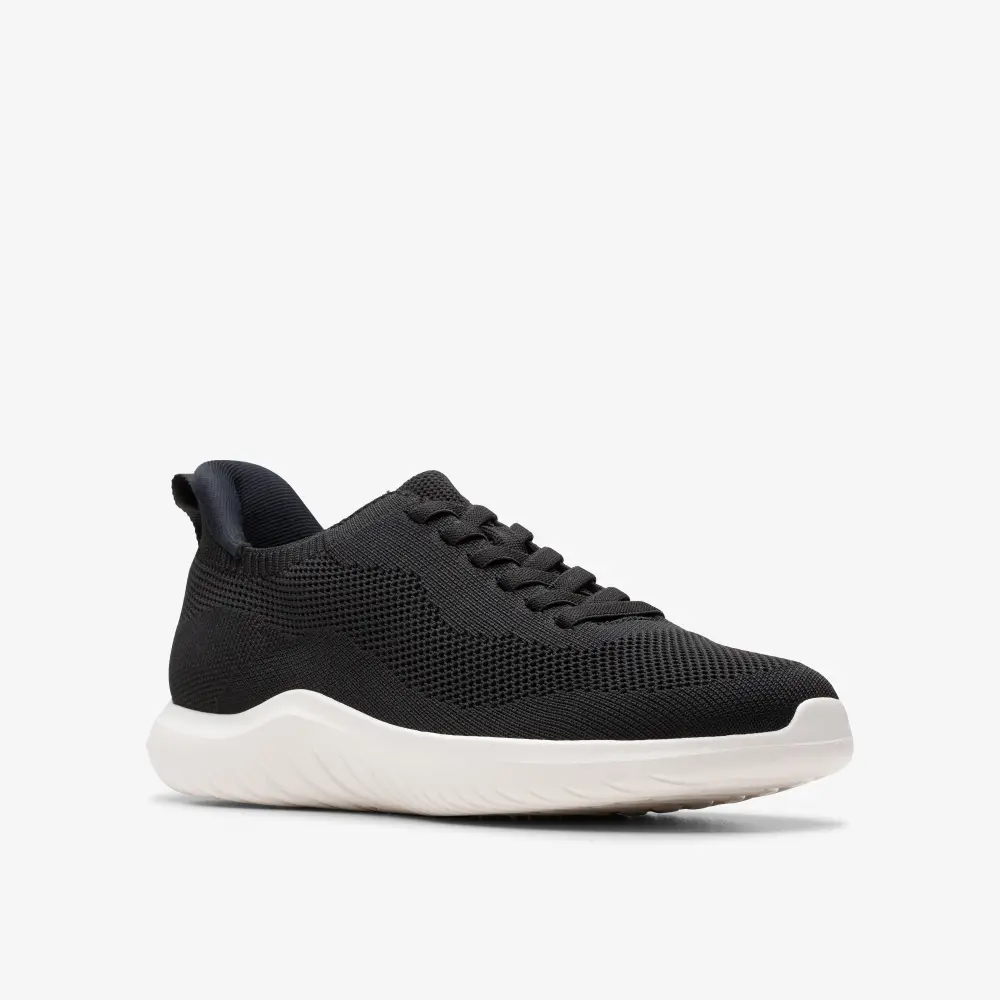 • Woven, breathable black textile upper