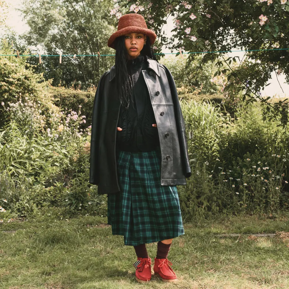 Introducing the Clarks Wallabee™ Boot Harris Tweed Pack, featuring a rich red suede upper with hand-stitched apron seams, this special edition boot is built using classic moccasin construction for ultimate comfort and flexibility.